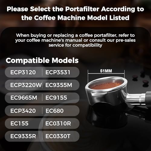 - فلتر قهوة إسبريسو 51 ملم، فلتر قهوة بمقبضين من السيليكون، متوافق مع ماكينة تحضير القهوة ديلونجي ECP3420 وEC155 وBCO430 وEC260 من ايكابي.
