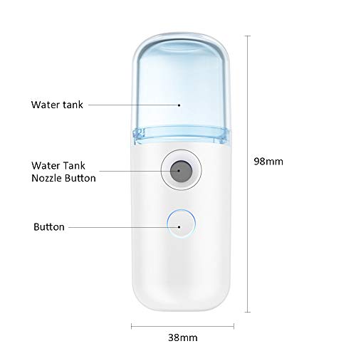Ikayaa - جهاز بخار للوجه محمول مرطب نانو صغير للوجه بخاخ ضباب مرطب للوجه USB بطارية قابلة لإعادة الشحن مع خزان مياه 30 مللي