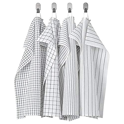 Ikea - فوطة شاي قطنية تي اس بي من ايكيا، لون ابيض/رمادي غامق/منقوشة، مقاس 45×60 سم (عبوة 4 قطع)، 40*60