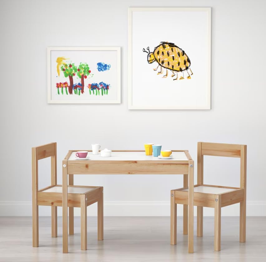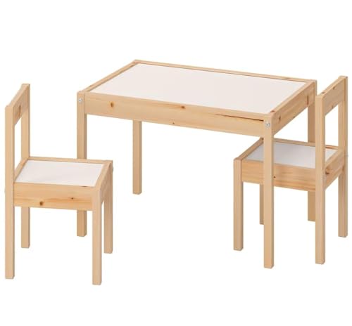 Ikea - طاولة للأطفال مع كرسيين لات من ايكيا، لون أبيض وباين