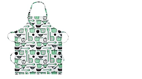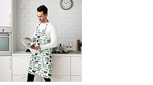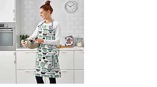 Ikea - مريلة من رينيج، ابيض/اخضر/منقوش (عبوة من قطعة واحدة)، ابيض