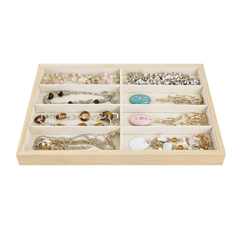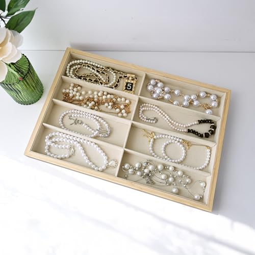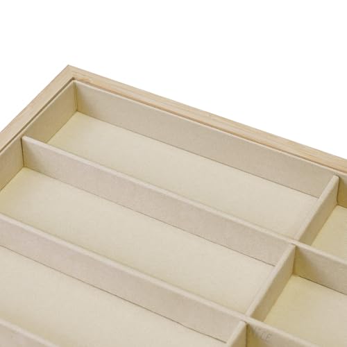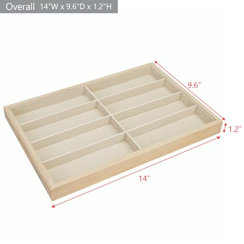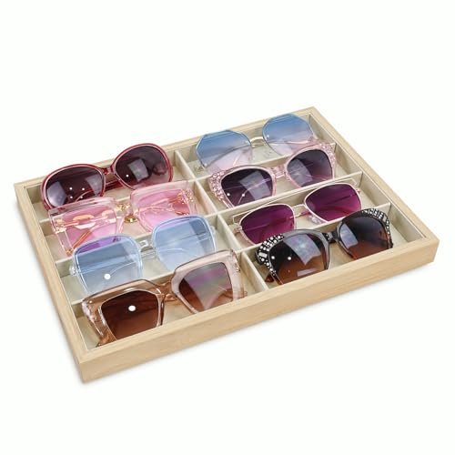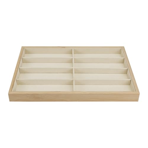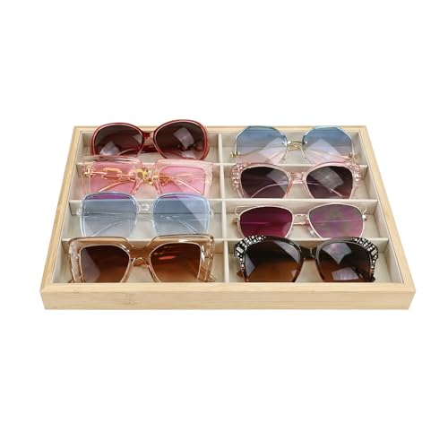 Ikee Design - صينية تنظيم النظارات الشمسية من الخيزران بـ 8 فتحات، صندوق تخزين مع بطانة من الشمواه البيج، صينية عرض متعددة الاغراض للنظارات والمجوهرات والاكسسوارات، 35عرض × 24 عمق × 3 سم ارتفاع من ايكي ديزاين