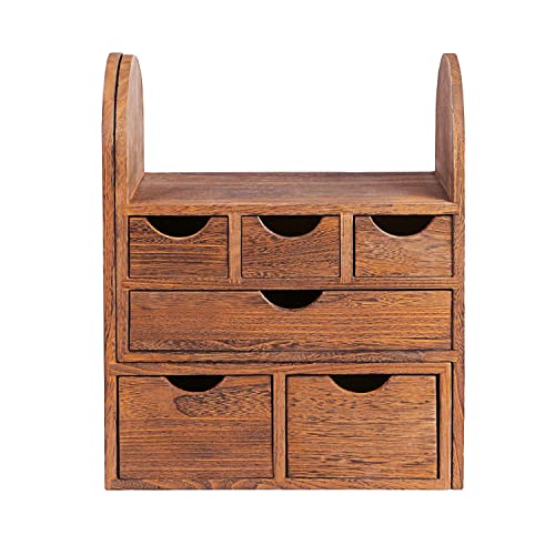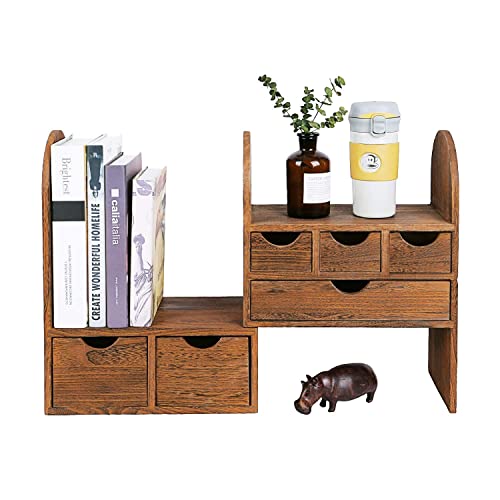 Ikee Design - منظم سطح مكتب خشبي كبير قابل للتمدد للوازم المكتبية، رف تخزين الكتب، حامل مقصورة ثابتة من ايكي ديزاين، 33 سم عرض × 15.8 سم عمق × 40.6 سم ارتفاع، لون بني