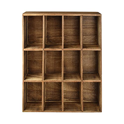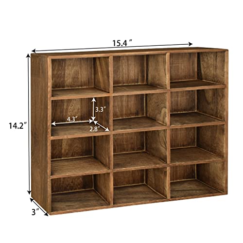 Ikee Design - ايكي ديزاين رف عرض خشبي قابل للتثبيت على الحائط مكون من 12 مساحة تخزين صندوق للظل 15.38 بوصة × عمق 3 ارتفاع 14.13 لون بني ملمع