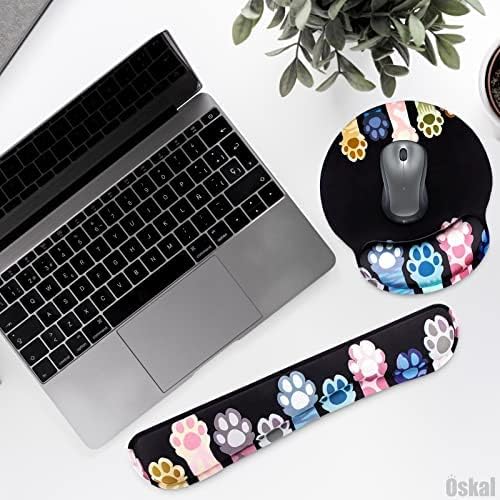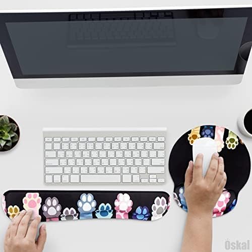 IKEEP - مسند كيبورد من الميموري فوم الاسود اللطيف للالعاب المنزلية والمكتب، وسادة ماوس لدعم المعصم على شكل مخلب قطة