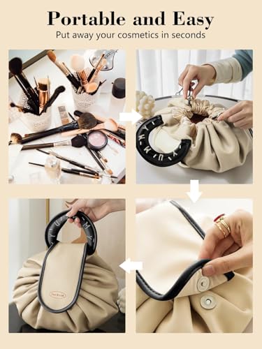 - 【اجلب الكفاءة إلى حياتك】فقط افتح حقيبة المكياج النسائية، جميع المنتجات واضحة في لمحة، أخرجي مستحضرات التجميل المطلوبة بسرعة، ووفر وقتك الثمين. يمكن تخزين لوازم التخزين بسهولة عن طريق سحب الرباط.
