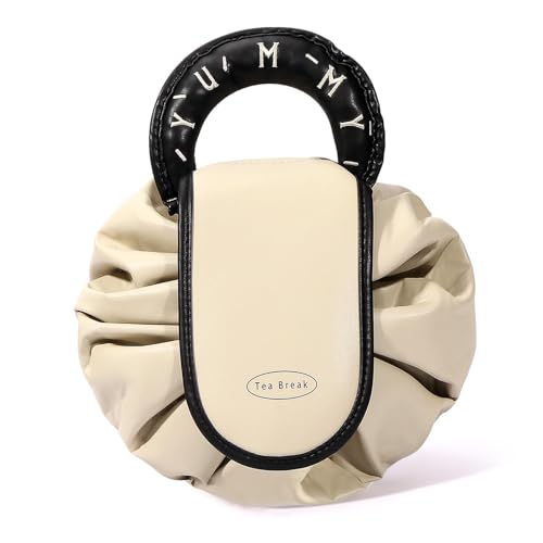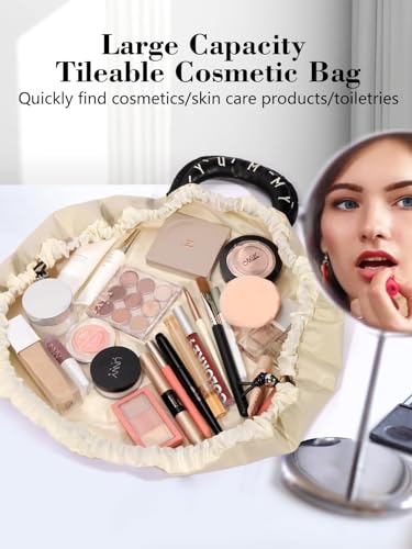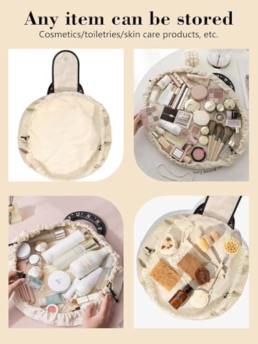 IKEEP - حقيبة تنظيم مكياج برباط سحب: حقيبة مكياج مسطحة للسفر - حقائب مستحضرات تجميل كبيرة للنساء والفتيات بلون مشمشي ومشمشي
