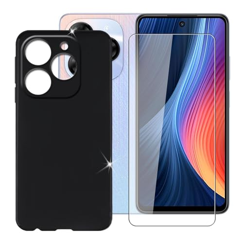 Ikiiqii - جراب موبايل ايكيكي لايتيل P55 4G 6.60 بوصة مع شاشة حماية غطاء مضاد للصدمات من السيليكون الناعم والبولي يوريثين الحراري المضاد للخدش زجاج مقوى P55 شبكة الجيل الرابع 4G أسود