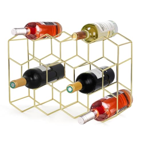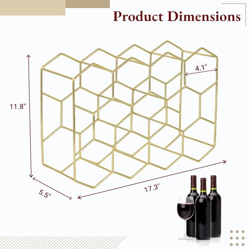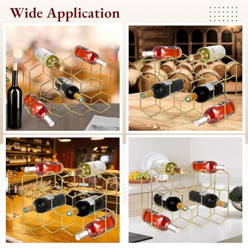 - 【11 فتحة سداسية فريدة】يحتوي رف النبيذ على 11 فتحة سداسية و3 مساحات تخزين علوية كبيرة جدًا، يستوعب ما يصل إلى 14 زجاجة نبيذ. فتحات هندسية فريدة تحتضن كل زجاجة بشكل آمن، مما يمنع الانزلاق والكسر. قم بزيادة المساحة الخاصة بك ورفع مستوى عرض النبيذ الخاص بك مع رف النبيذ المبتكر هذا!