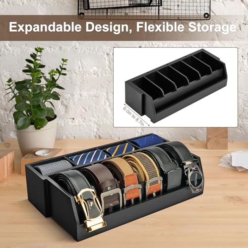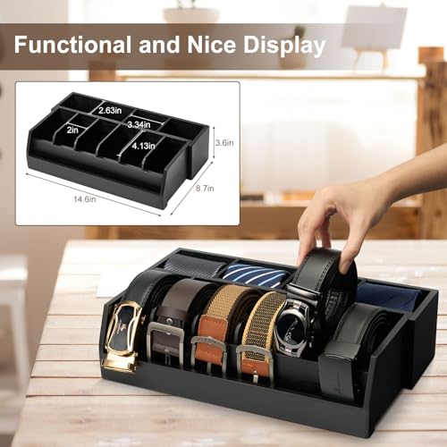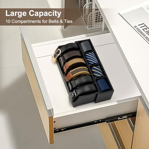 ikkle - صندوق خشبي لتنظيم الأحزمة، مع 10 مساحات تخزين لتنظيم الأحزمة والكرافتات للدولاب والدرج، منظم لعرض الكرافتات، حامل أحزمة كبير للرجال من ايكل (أسود)