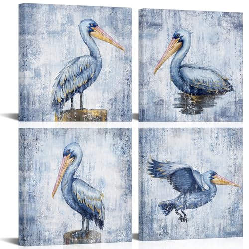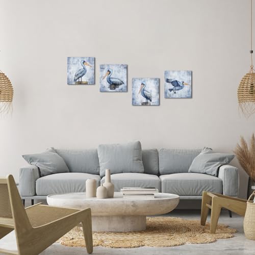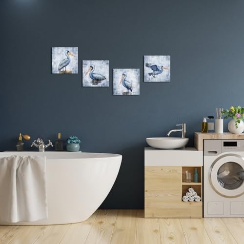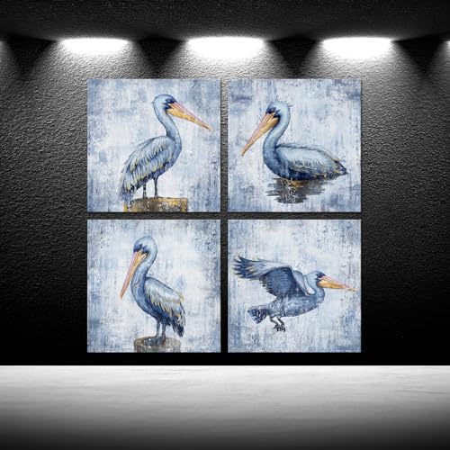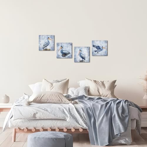 iKNOW FOTO - اي نو فوتو لوحة فنية جدارية من قماش البجع المعاصر - مجموعة 4 لوحات تجريدية للطيور باللونين الازرق والرمادي مثالية لغرفة المعيشة وغرفة النوم وديكور الحمام كل 12 × انش