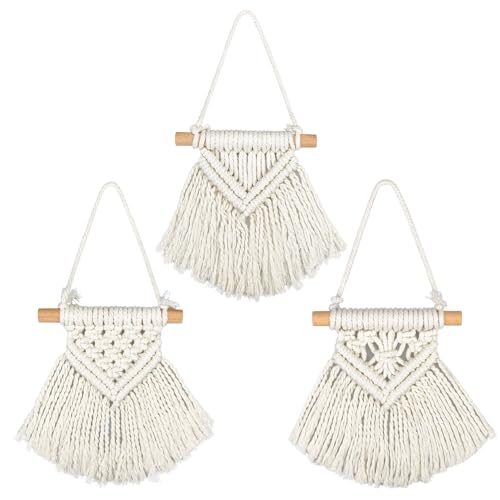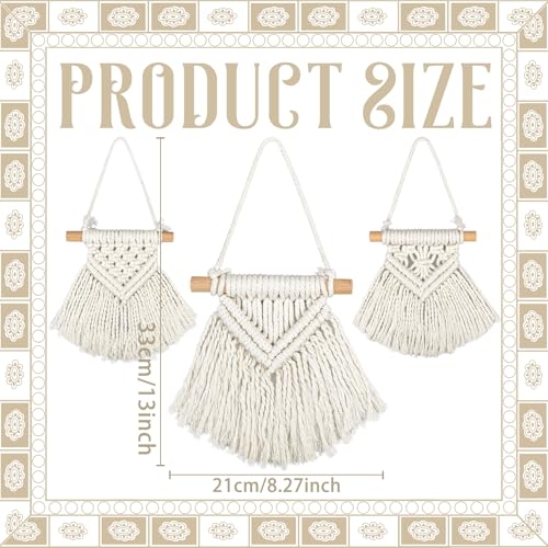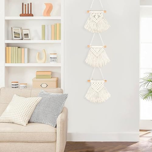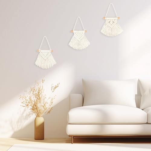 Ikosora - 3 قطع مكرمية معلقة على الحائط من ايكوسورا ديكور حائط بوهو بيج بساط بوهيمي منسوج مجموعة لديكور لغرفة النوم وغرفة المعيشة والحضانة والشقة والسكن الجامعي