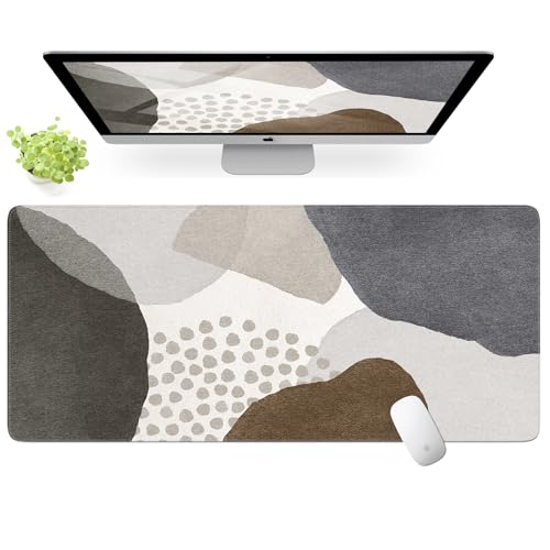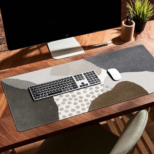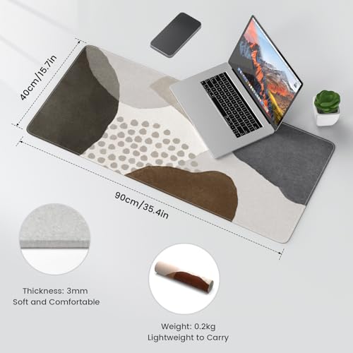 iLeadon - لوحة ماوس من اللباد بدون رائحة كريهة مع حواف مخيطة مصممة كبساط مكتب الكمبيوتر بنمط بوهيمي وحجم كبير لسطح المكتب بسمك 3 ملم من اي ليدون، لون رمادي، مقاس 90 سم × 40 سم