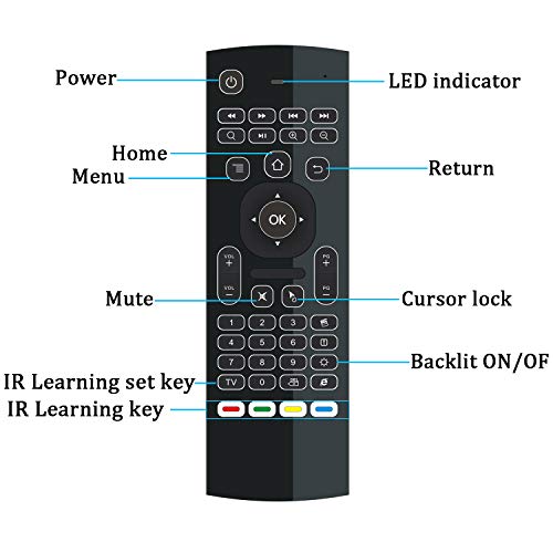 ILEBYGO - ماوس هوائي لجهاز اندرويد تي في بوكس من اي ليبيجو كيبورد لاسلكي صغير بريموت مع اضاءة خلفية MX3 بالاشعة تحت الحمراء لتعلم والكمبيوتر وجهاز العرض واتش بي سي وما الى ذلك