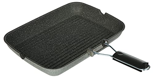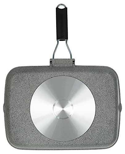 ILLA - طاسة شوي بيد قابلة للطي من ايلا إيطالي، 36×26 سم - رمادي، جرانيت