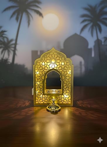 Generic - مبخر مضيء - ديكور اسلامي فاخر على شكل مذود، اضاءة LED، مادة اكريليك، معدن ذهبي، قاعدة خشبية صلبة، مقاس 25 × 16 سم
