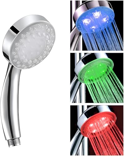 Generic - رأس دش مضاء - يتميز بمصابيح LED التي تغير الألوان استجابة لدرجة حرارة الماء مع مستشعر داخلي حساس لتجربة استحمام أنيقة وآمنة (باللون الموضح, 1 راس دش)