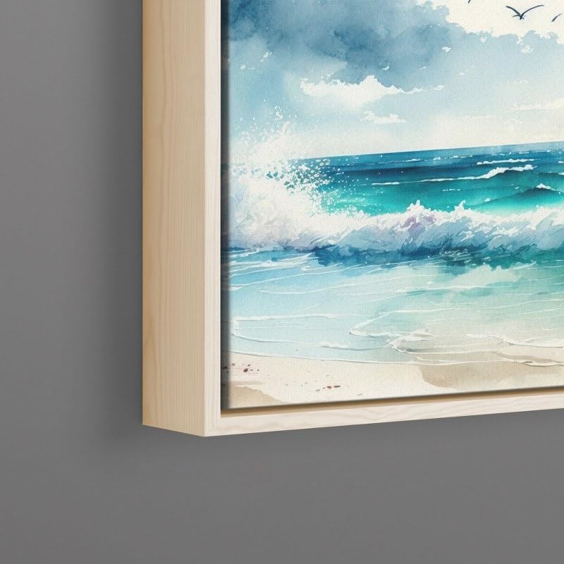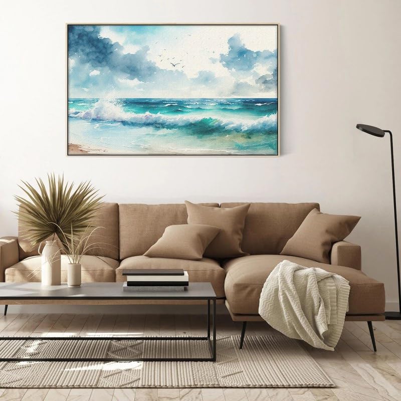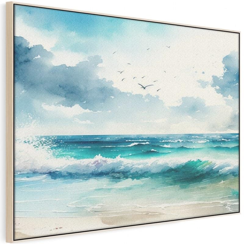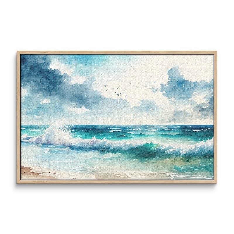 Home Gallery - لوحة فنية مؤطرة من القماش لديكور الحائط بتصميم موج بحر بألوان مائية، 1.2 متر × 80 سم