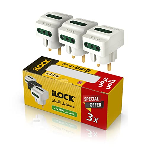 iLOCK - مجموعة محول قابس حائط ب3 اتجاهات قدرة 3500 وات مكونة من 3 قطع لون ابيض من ايلوك , عدد 1