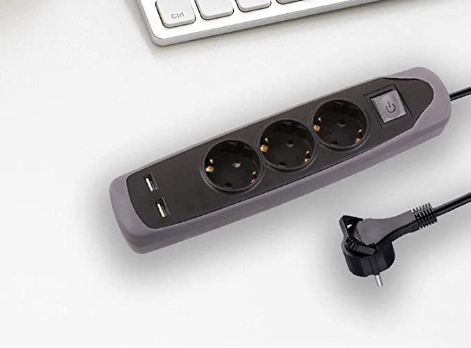 iLOCK - مشترك كهرباء يحتوي 3 مقابس ومنفذي USB معتمدين بلون اسود من اي لوك