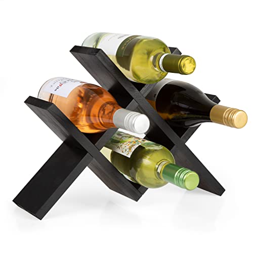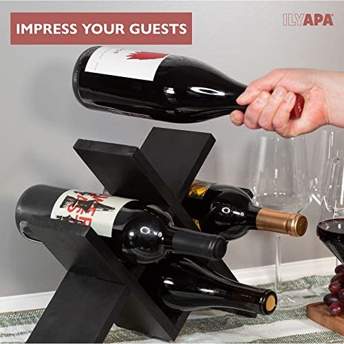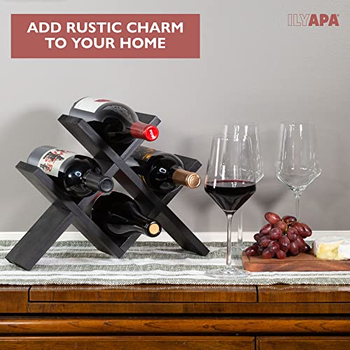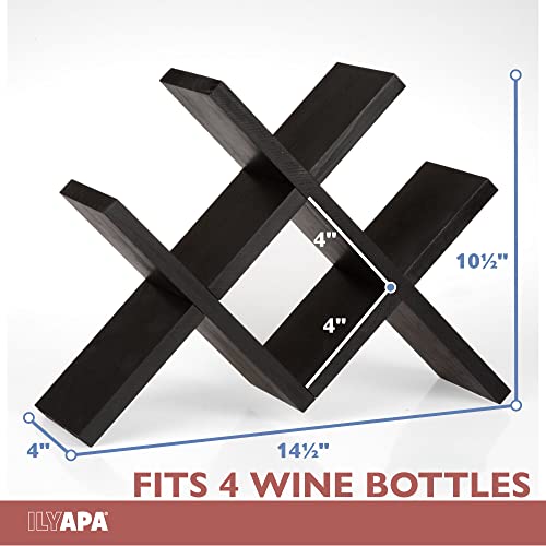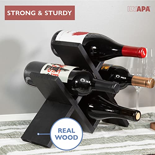 Ilyapa - حامل زجاجات شراب يُوضع على سطح الطاولة من ايليابا يحمل 4 زجاجات - حامل زجاجات شراب من الخشب الأسود بنمط ريفي