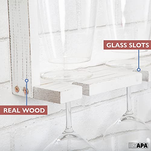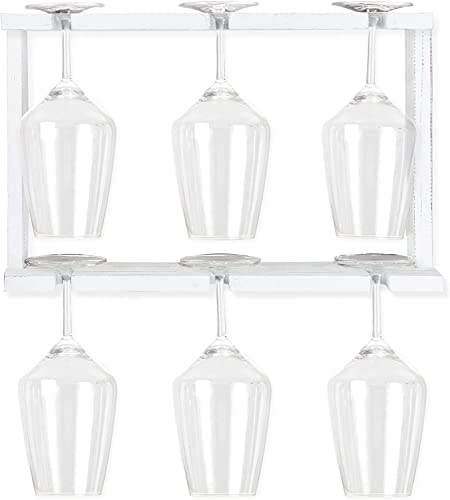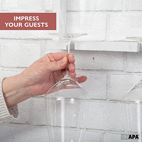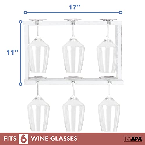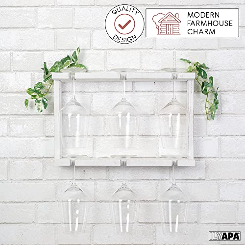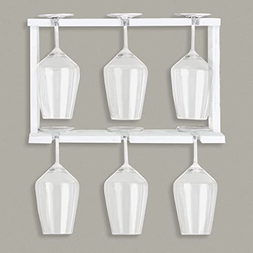 Ilyapa - ايليابا رف نبيذ خشبي يثبت على الحائط - حامل اكواب نبيذ ابيض بطبقتين - تخزين لـ 6 اكواب