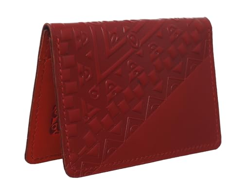IMAN SOLEMAN - حافظة جواز سفر جلد بتصميم هندسي للجنسين من ايمان سليمان، مقاس 15×10.5 سم - احمر