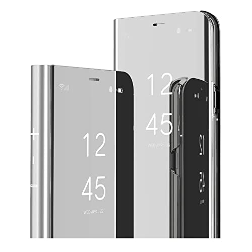 IMIRST - جراب فليب لموبايل اوبو رينو 8 - غطاء حماية بتصميم كتاب شفاف عاكس مع مسند لهاتف 8. مرآة قلابة: فضي سيليكون