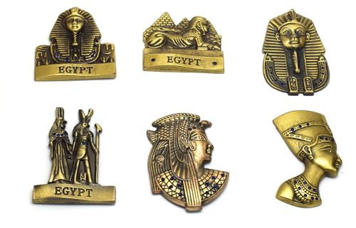 immatgar - 6 قطع من مغناطيس ثلاجة فرعوني كبير الحجم هدايا تذكارية مصرية من مصر للنساء والفتيات (أصفر محروق)