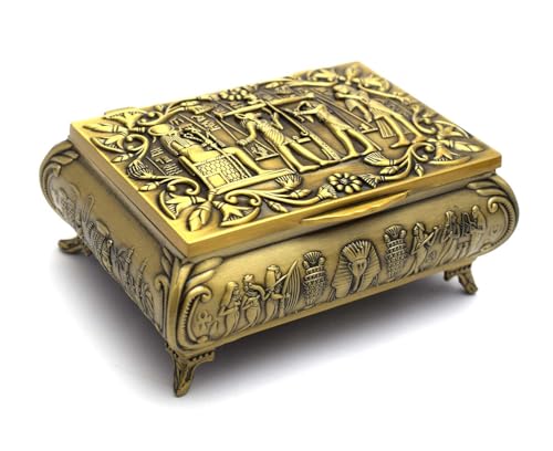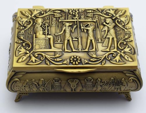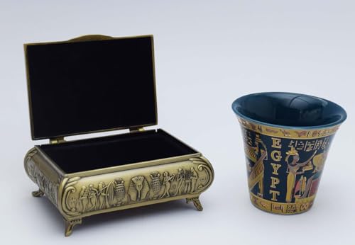 - تصميم مستوحى من مصر: يتميز صندوق المجوهرات الفاخر هذا بنمط فرعوني مذهل، يمنح غرفتك لمسة من الأناقة والذوق الثقافي. قطعة فنية مثالية لمحبي الفن المصري كقطعة زخرفية.