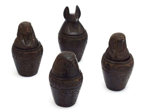 immatgar - عبوة من 4 قطع تماثيل مصرية فرعونية ايماتجار صندوق تخزين هدايا تذكارية هدية مستوحاة مصر بني - طول 6.5 سم حجر