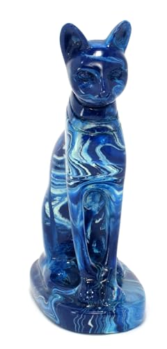 immatgar - تمثال قطة فرعونية من ايماتجار، هدايا تذكارية مصرية مصنوعة يدويًا من مصر (لون أزرق مموج بطول 2-13 سم)