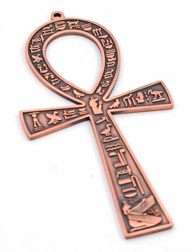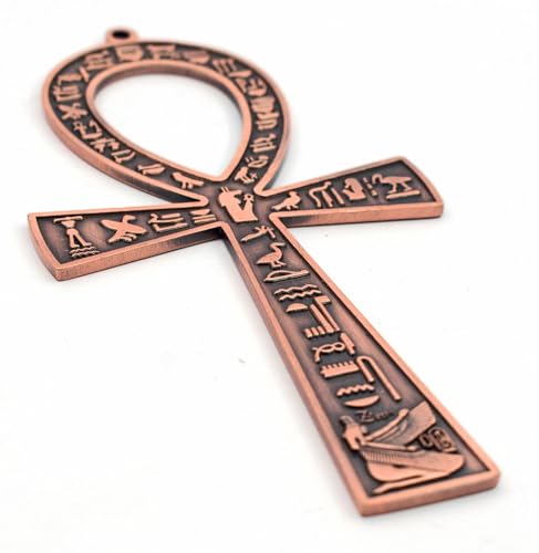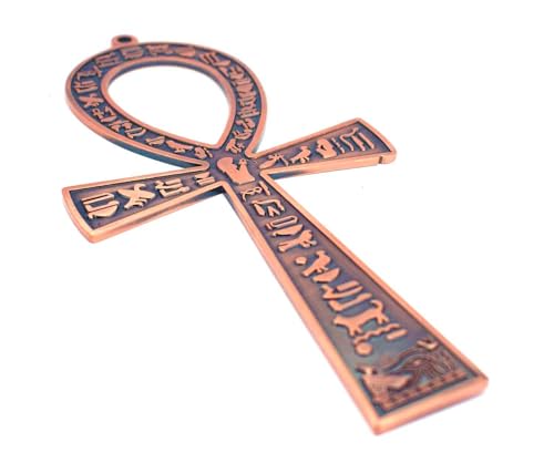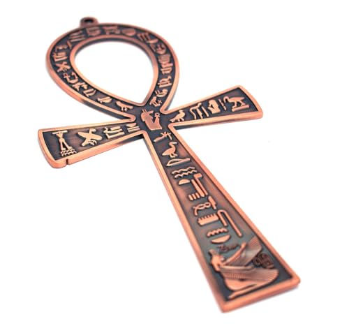 immatgar - مجسم مفتاح الحياة مصري فرعوني مزخرف من المعدن، هدايا تذكارية مستوحاة من مصر القديمة، منحوتات ديكور منزلية يدوية الصنع من ايماتجار (لون أحمر بيرنت- طول 17 سم)