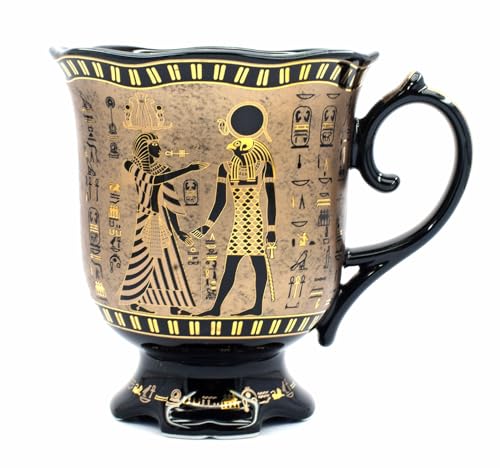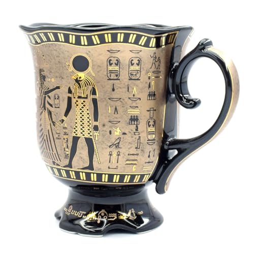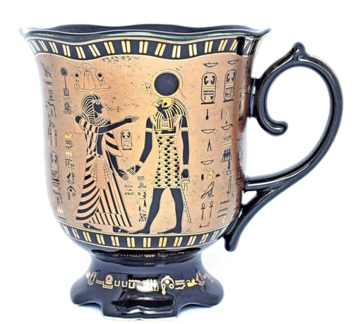 immatgar - مج حريمي ورجالي بطبعة زهور فرعونية من ايمتجار، هدايا تذكارية مصرية قديمة بطبعة ملكين، بلون أسود ذهبي، سعة 250 مل