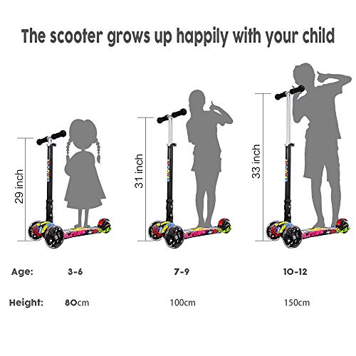 - ♛ مقبض قابل للتعديل: صُمم السكوتر خاصتنا للأطفال من سن 3 إلى 12 سنة، ويتضمن 3 خيارات ارتفاع قابلة للتعديل من 63 سم إلى 85 سم، مما يجعله مناسبًا للأطفال في مرحلة النمو. يُعد مناسبًا لارتفاع 82 سم -1.35 متر