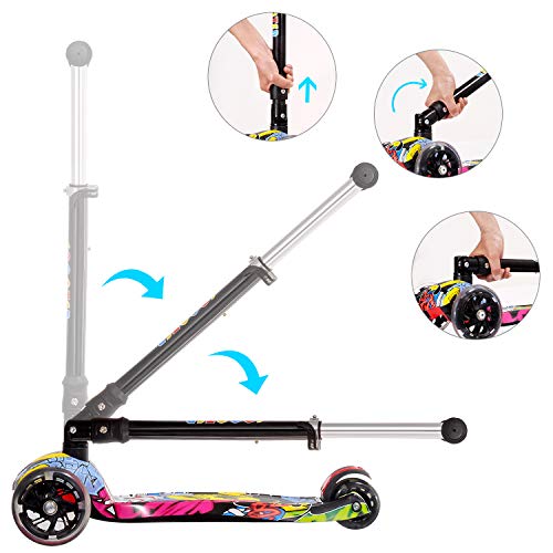 IMMEK - سكوتر للأطفال من عمر 3 إلى 12 سنة، قابل للطي، يتحمل حتى 50 كجم مع مقود بطلاء مؤكسد بارتفاع قابل للتعديل وعجلات ليد وامضة من ايميك، متعدد الألوان