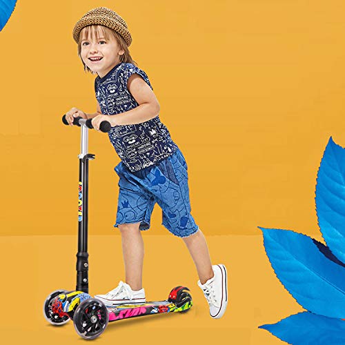 IMMEK - سكوتر برسومات جرافيتي قابل للطي للأطفال من عمر 3 إلى 12 سنة، بعجلات إضاءة ليد ساطعة، وارتفاع قابل للتعديل من 63 سم إلى 85 سم، سكوتر بثلاث عجلات وعجلات مضيئة، أقصى وزن حمل يبلغ 50 كجم من ايميك