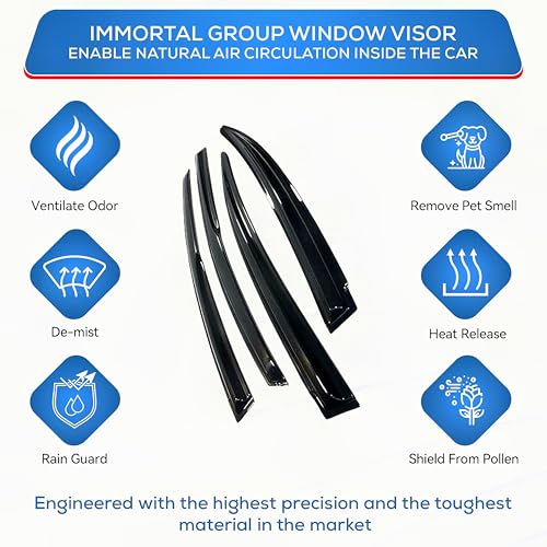Immortal Group - واقي نافذة السيارة، شريط لاصق واقي من المطر فائق المتانة وواقي من الشمس والرياح والهواء، عاكس هواء جانبي للنوافذ من ايمورتال جروب