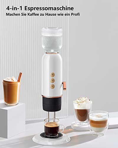 IMONS - ماكينة تحضير اسبريسو صغيرة 4 في 1 بتسخين سريع 19 بار تعمل بالضغط 3 ثوان مع خراطيش قابلة للتبديل لبن القهوة المطحون مناسبة للسفر والمنزل والمكتب من ايمونز أبيض بلاستيك