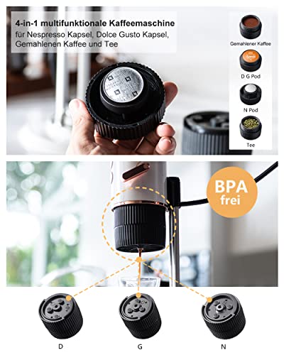 - متعددة الاستخدامات 4 في 1: تأتي ماكينة تحضير القهوة ايمونز مع 3 خراطيش قابلة للإزالة بسهولة لوحدات نسبريسو ووسادات دولتشي غوستو والقهوة المطحونة والشاي.