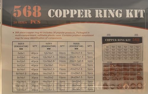Generic - IMPA 568 قطعة طقم حلقات نحاسية متنوعة المقاسات، مجموعة واشر نحاس للصيانة، رقم الكود 813080، صناعة صينية