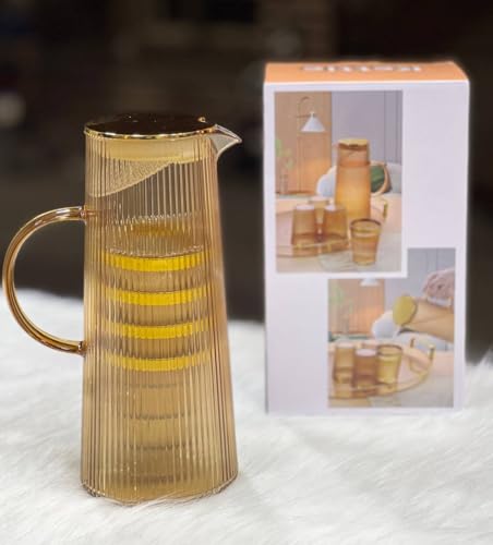Generic - طقم تقديم مشروبات أكريليك مقاوم للصدمات – دورق 1.7 لتر + 4 أكواب – مناسب للمشروبات الساخنة والباردة بتصميم عصري أنيق (عسلي)