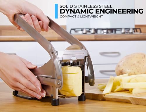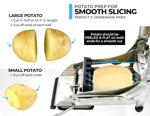 • تتضمن مقاسين من الشفرات المصنوعة من الفولاذ المقاوم للصدأ: 1 سم لتقطيع البطاطس المقلية المنزلية الصنع الصغيرة أو 1.3 سم للقطع الكبيرة.