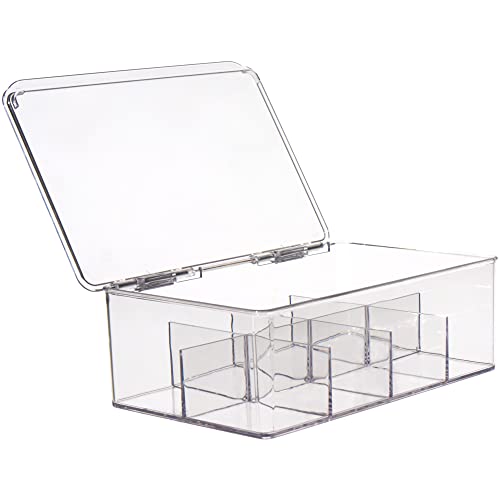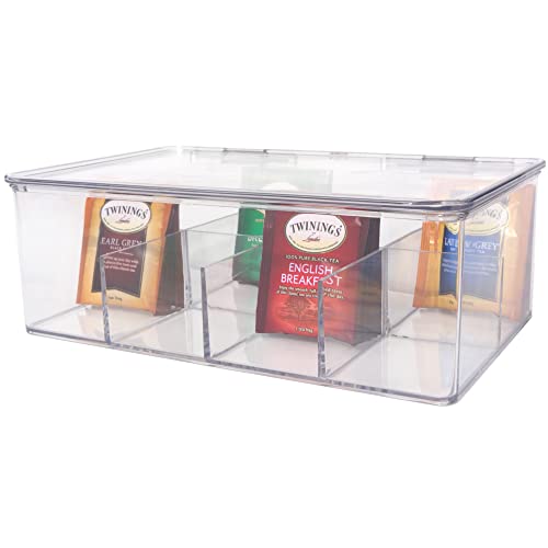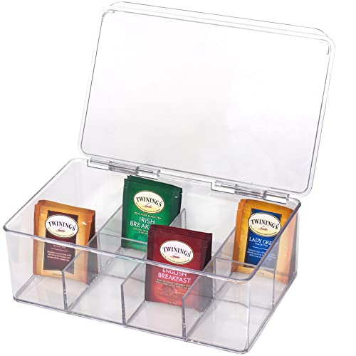 ImpiriLux - منظم أكياس الشاي من امبيريلكس – عبوة واحدة | صندوق تخزين قابل للتكديس بغطاء مفصلي لأسطح المطابخ، المخازن، والخزائن | مصنوع من بلاستيك شفاف لتنظيم أكياس الشاي