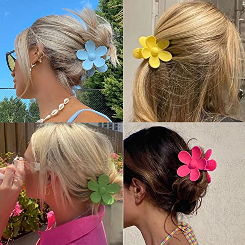 Impoditiongs - 6 قطع من مشابك الشعر الكبيرة الملونة غير القابلة للانزلاق، مشابك شعر بنمط زهور، مشابك شعر بلاستيكية كبيرة، لربط الشعر أثناء الاستحمام، غسل الوجه، المكياج، الحفلات، قدتختلف الالوان