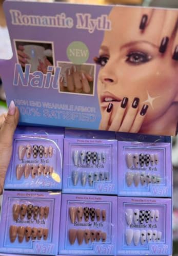 Generic - أظافر صناعية مستورده لامعة تثبت بالضغط ، مجموعة أظافر تركيب عن طريق الضغط من 6 لونُا بتغطية كاملة، شكل مستطيل وقصير وبيضاوي للنساء والفتيات،لون لامع العلامة التجارية: عام