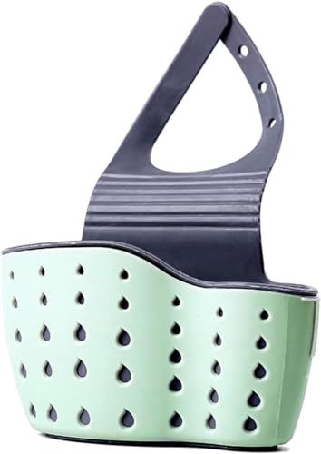Importados unknown - رف حوض المطبخ غير معروف من امبورتادوس، حامل صابون واسفنجة تصريف مزدوج الطبقة، سلة معلقة للتخزين وكوب شفط لتنظيم المطبخ واكسسوارات الحوض (لون اخضر)، بلاستيك
