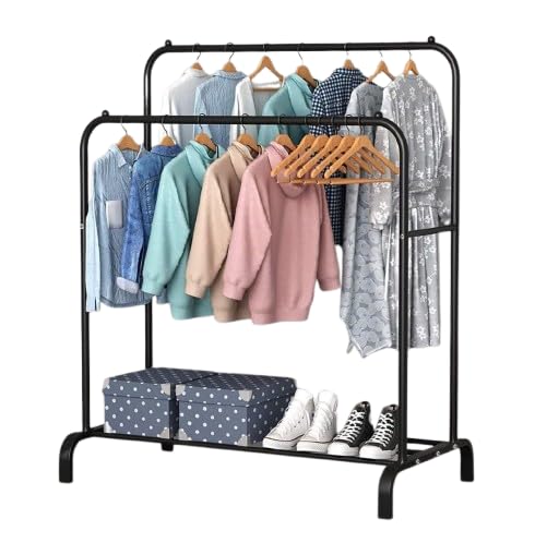 Generic - ستاند ملابس زوجي فرنسي مستورد – منظم ملابس وحامل حقائب معدني مجلفن عالي التحمل – رف تجفيف وتخزين متين بسعة وزن تصل إلى 35 كجم – مقاس كبير 110x57x150 سم