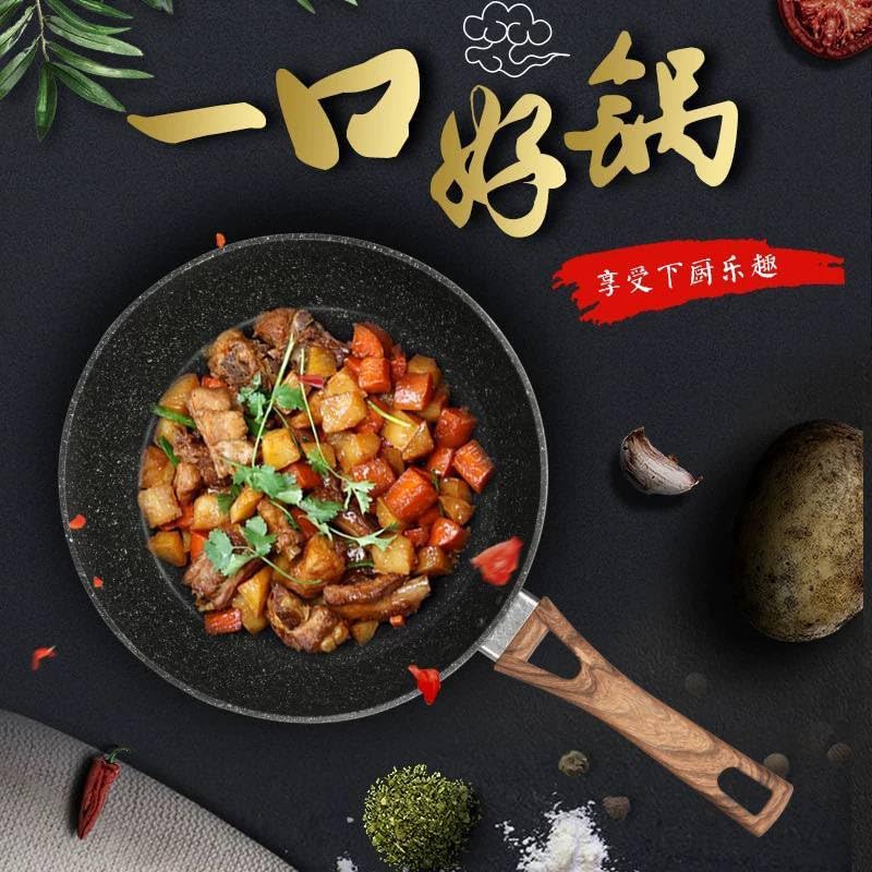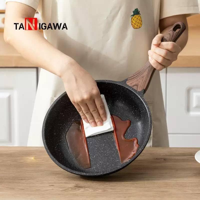 Generic - مقلاة جرانيت مستوردة – مقبض خشبي أنيق ومقاس عملي 22 سم AW