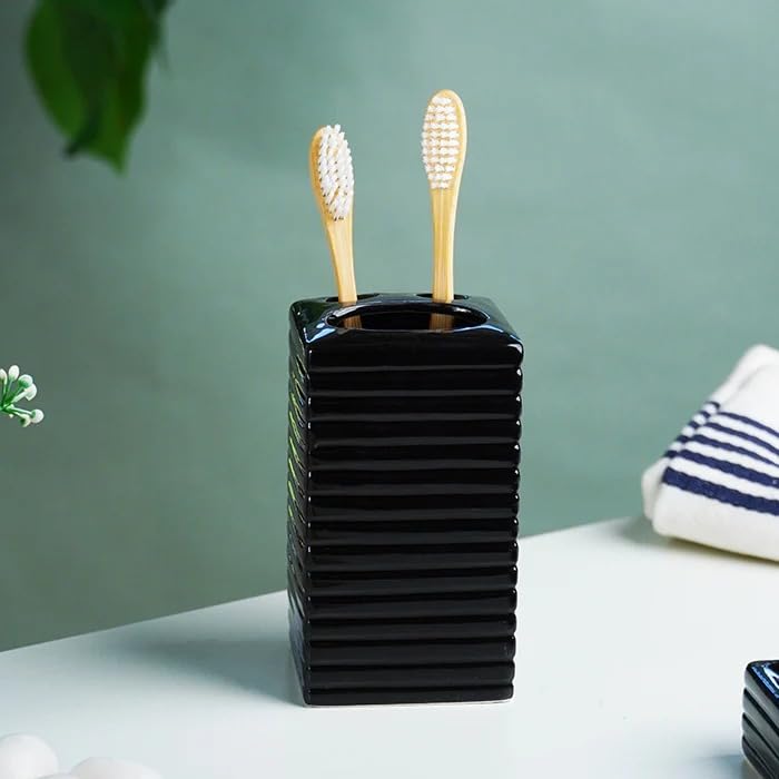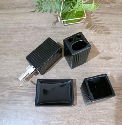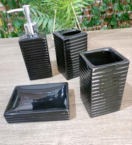 Generic - "مجموعة حمام بورسلين مستوردة عالية الجودة - تصميم أسود وأبيض راقي - مكونة من 4 قطع متنوعة لديسبنسر، صابونة، معجون وفرشاة أسنان - جاهز ل - من جينيريك